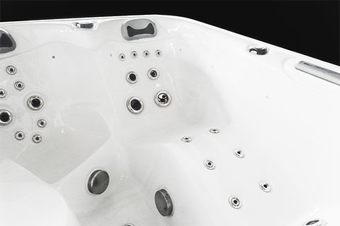 The spa end is the perfect space for up to 5 adults with it’s powerful hydrotherapy jets, waterfall and LED lighting system. The swim end, based on our Ares model, has five powerful and adjustable jets. When swimming against the counter currents, there are three rest seats for if you are working out with friends and family.
