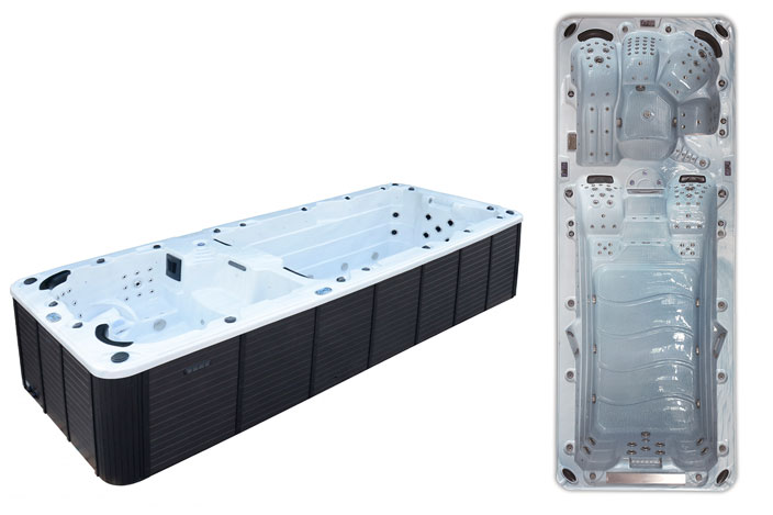 The spa end is the perfect space for up to 5 adults (4 sitting + 1 lounging) with it’s powerful hydrotherapy jets and LED lighting system. The swim end has powerful and adjustable jets. When swimming against the counter currents, there are three rest seats for if you are working out with friends and family.